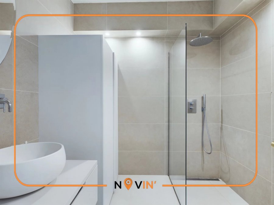 The fully renovated apartment includes a fitted kitchen and a walk-in shower.