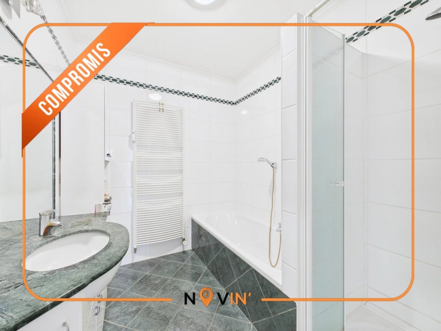 La partie nuit comprend deux chambres, mesurant respectivement environ 16 m2 et 11 m2. Une salle de bains complète l'ensemble avec baignoire, douche et meuble vasque. Un WC séparé vient compléter cet appartement.