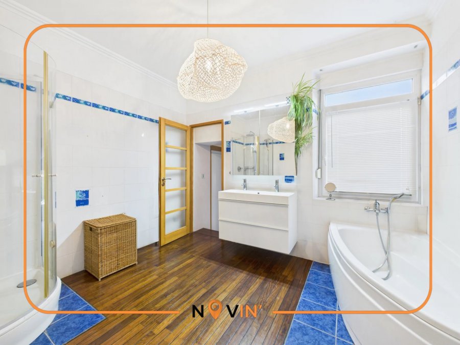 Erstes Obergeschoss: drei Schlafzimmer von 13,6 bis 15,6 m², ein separates WC und ein helles Badezimmer mit Dusche, Badewanne und Zugang zu einem Ankleidezimmer.